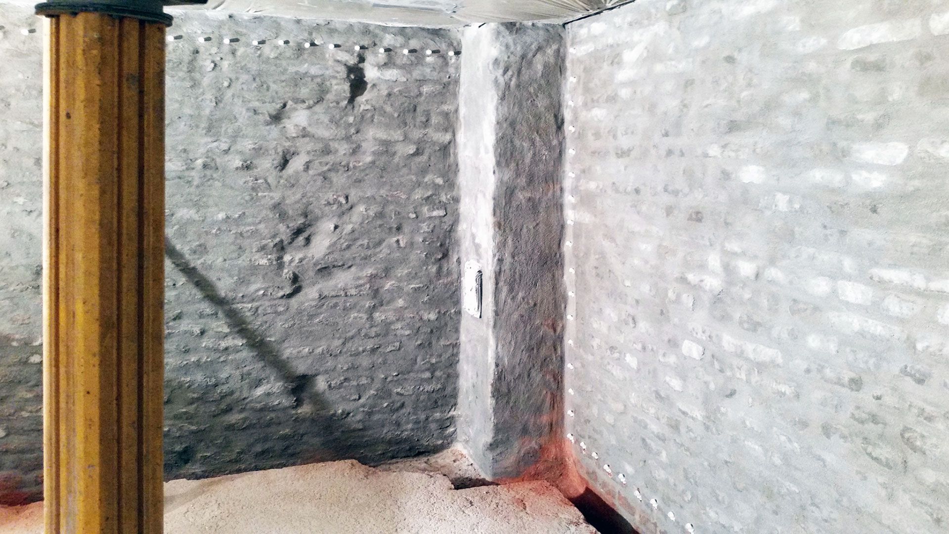 Instandsetzung von drei innenliegenden Garagen und dem darunterliegenden Kellerraum an einem dreigeschossigen innerstädtischen Wohnhaus. Erstellen einer Innenabdichtung an den Kellerumfassungswänden in Verbindung mit Vertikal- und Horizontalsperren im Ziegelmauerwerk. Ausführung 2016.